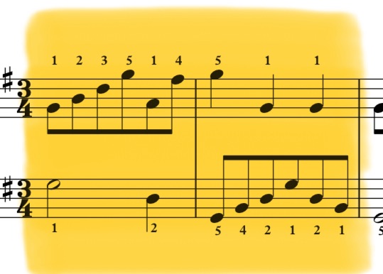The first two measures introduce the characteristic Motif of the piece! As you can see, it’s an “arpeggio-like melody” which flows like a musical wave!