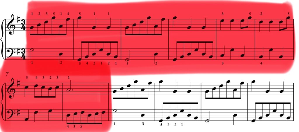 When you’re ready to put your hands together, focus on one phrase at a time. That’s how I’ve learned even full concertos over the years! Breaking it down into 4-measure phrases helps you internalize the structure. The repeated sections will also help you memorize both the rhythm and the harmony, making it easier to play fluently—or even by heart.