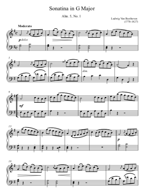 In this analysis, we will examine the formal and harmonic structure of one of Beethoven’s most well-known sonatinas, the Sonatina in G Major, Ahn. 5, No.1. This piano piece is often taught to intermediate-level students. Through this analysis, we aim to provide a deeper understanding of the piece, which will aid both in its interpretation and performance.
