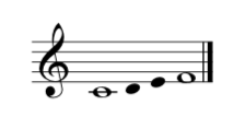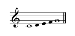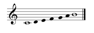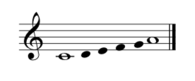 These are the intervals in the C Major scale with the tonic (C) as the reference note. The movement is ascending and melodic, meaning the two notes are played one after the other rather than together. The base note (C) is played first, followed by the higher-pitched note.